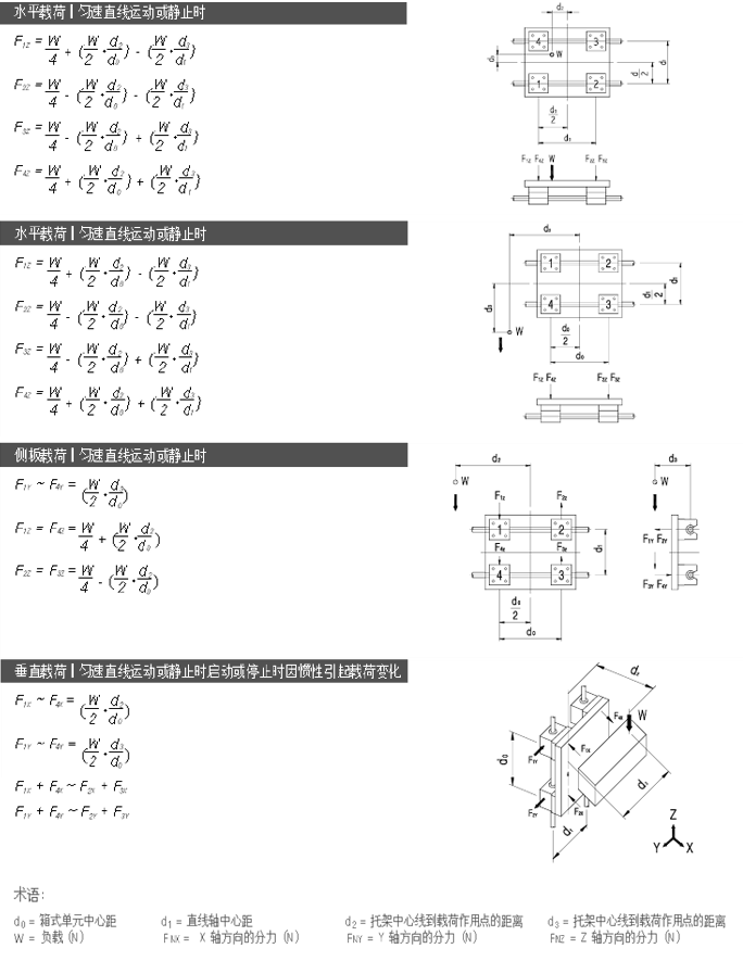 在设计一个直线运动系统时,有必要考虑系统参数对运行结果的影响。下面的例子说明了载荷的位置和系统重心是如何影响到产品选型的。评价设计是否合理,应该考虑作用在系统中的每一个力,来确定最合适的选型.